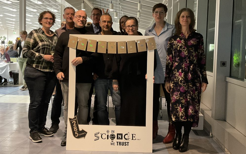 Bei einer gemeinsamen Jubiläumsfeier von neun Kolleginnen und Kollegen bei der Bayer AG (4x 25 und 5x 40 Dienstjahre) wurde ein Spendenschwein für Kindertal aufgestellt.