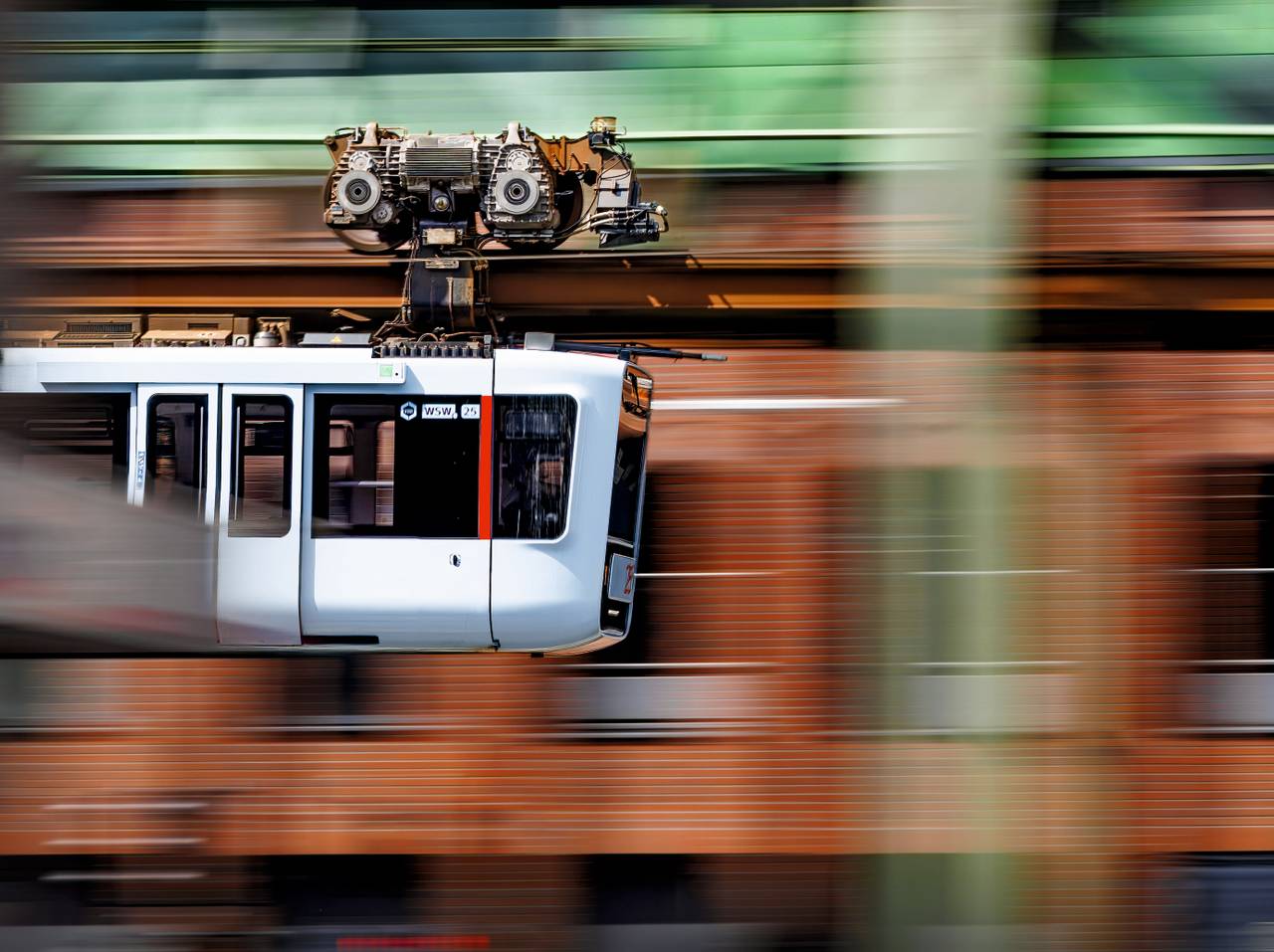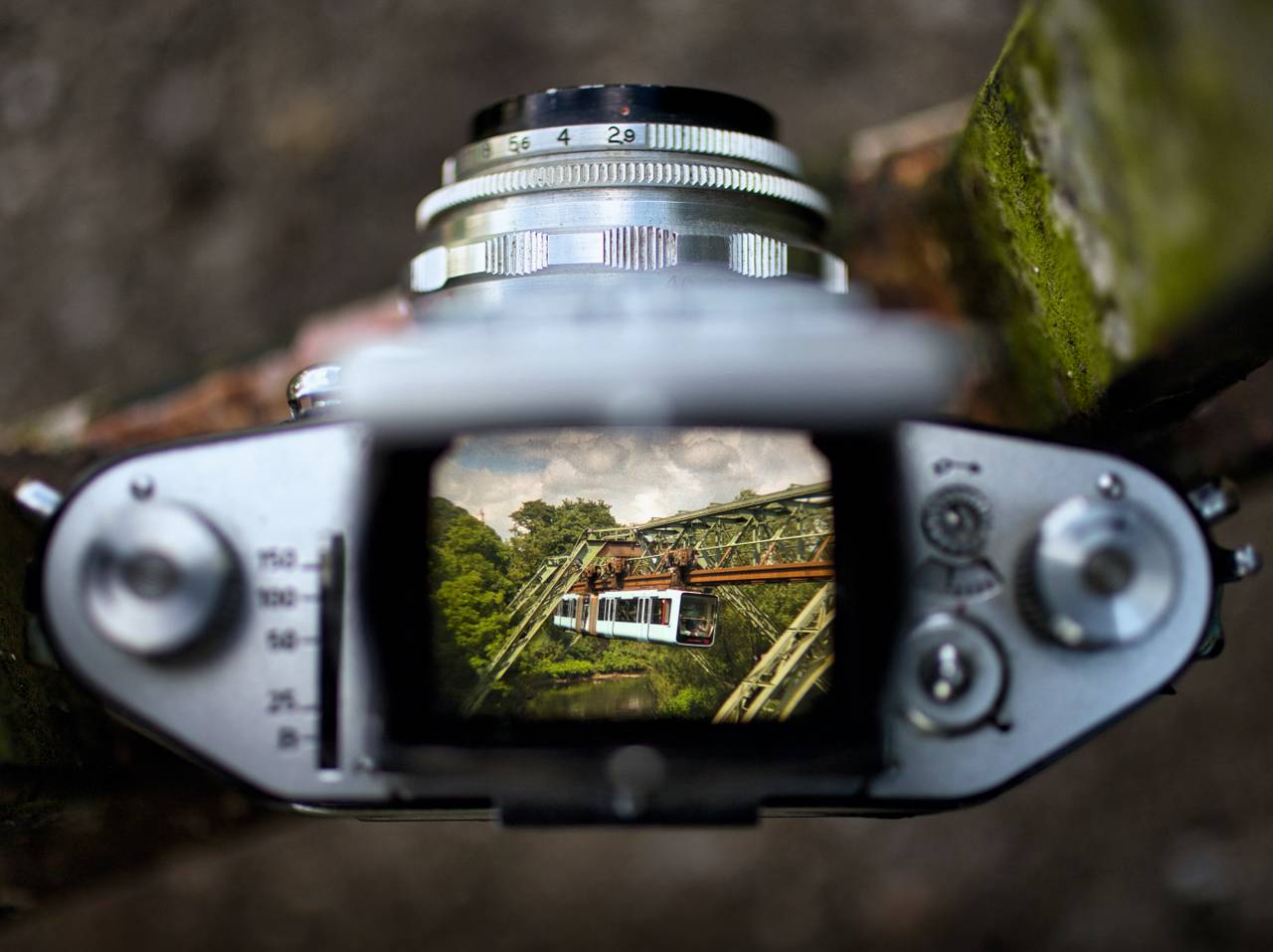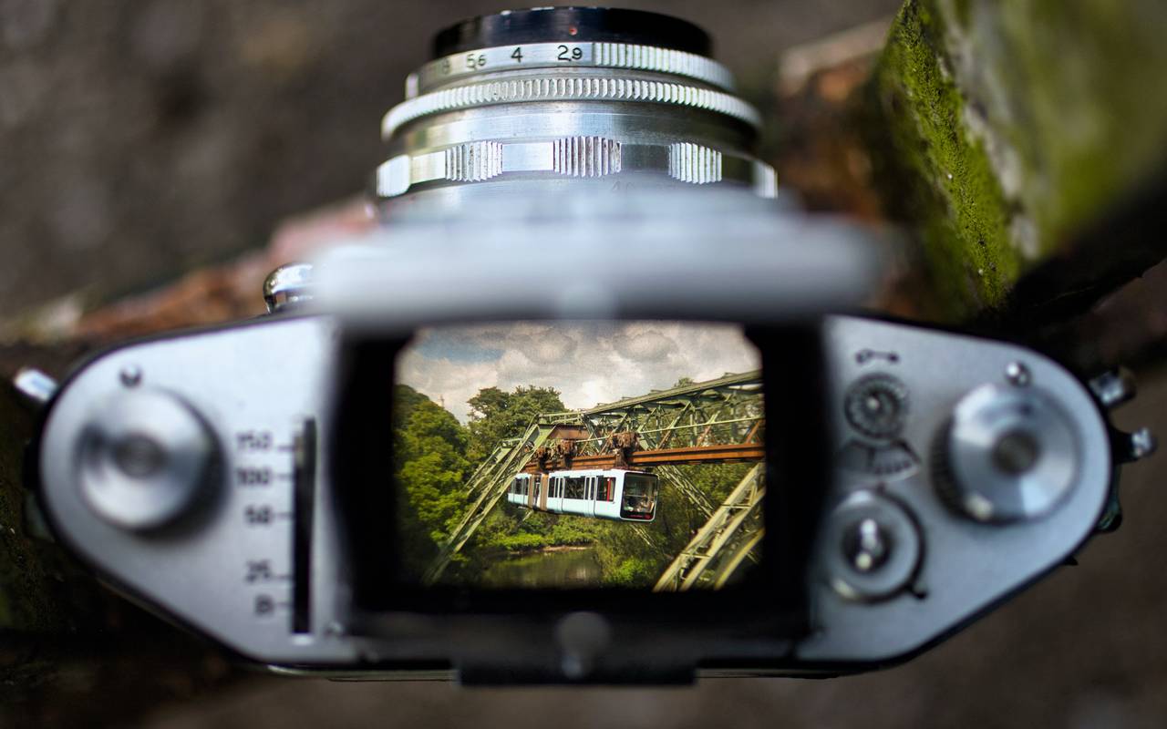 Ein Foto einer Fotoaufnahme hat den Wuppertaler Fotopreis gewonnen. Cedric Lutterkordt hat die Schwebebahn durch den Sucher einer alten Fotokamera fotografiert.