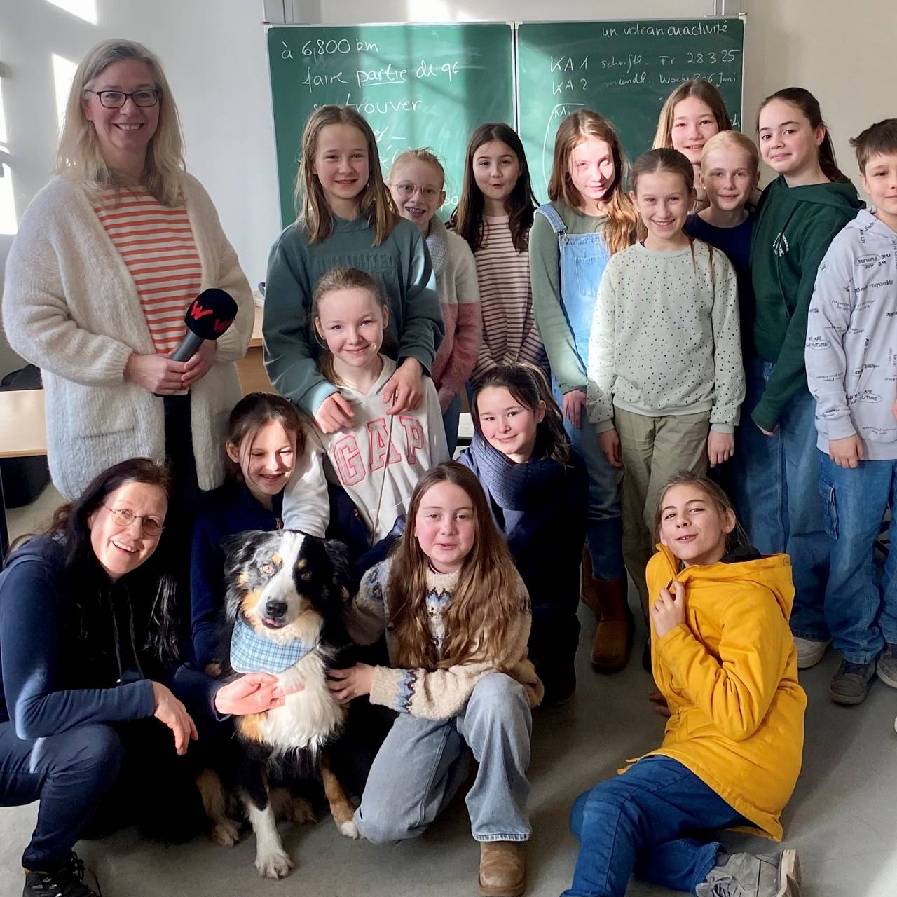 Am Gymnasium Vohwinkel geht Schulhund Louie mit in den Religionsunterricht. Er ist extra dafür ausgebildet worden. Schulhunde schaffen eine gute Atmosphäre im Unterricht, sie können Stimmungen der Kinder gut spiegeln.