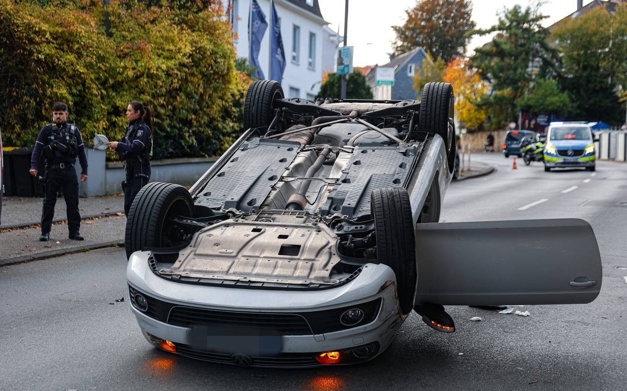 Unfall in Oberbarmen: Auto landet auf dem Dach