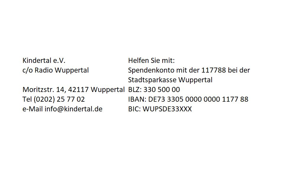 Wenn Ihr für Kindertal eine Aktion plant, dann stellen wir das gern hier online. Auf der Kindertal-Internetseite findet ihr alle Infos zu Kindertal, zur Kindertal-Geschichte und zu den verschiedenen Spenden-Möglichkeiten.